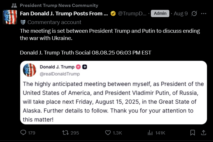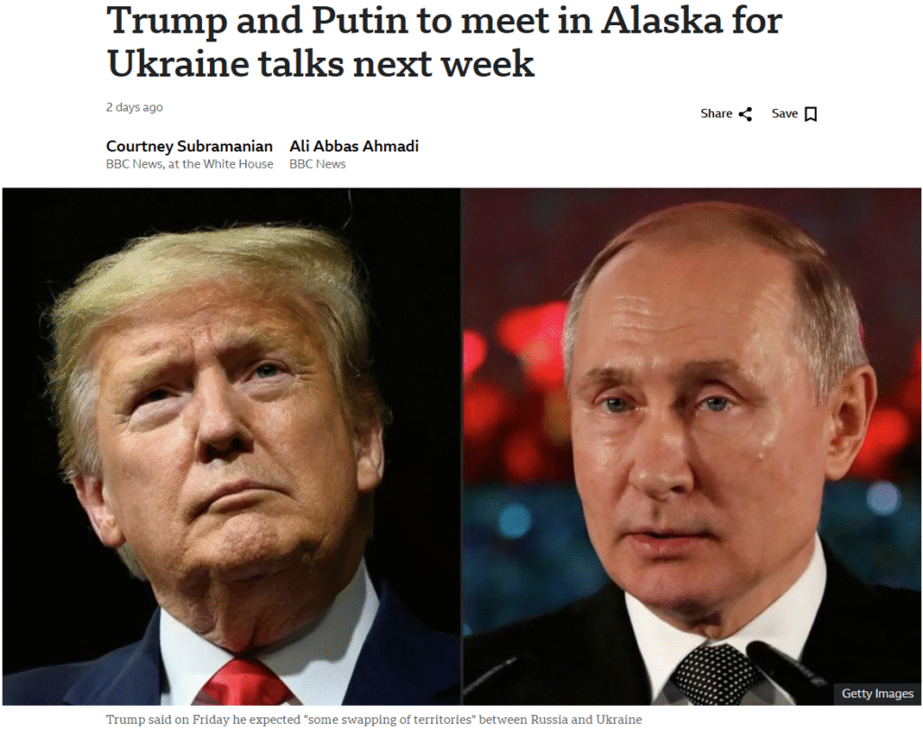 Vineri ne așteaptă întâlnirea Trump-Putin din Alaska – un eveniment pe care piețele îl urmăresc ca pe un meci de poker de mize mari. Trump vorbește despre „schimburi de teritorii”, o formulare care în traducere directă înseamnă că Rusia și-ar păstra cuceririle, Ucraina și-ar pierde teritoriile, iar lumea și-ar câștiga liniștea.