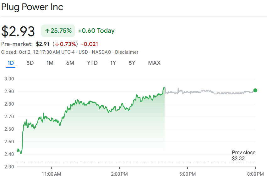 Acțiunile Plug Power Inc. (PLUG) au crescut cu peste 20% miercuri, după ce compania a anunțat livrarea primului său modul electrolizor GenEco de 10 megawați către Galp, o companie energetică portugheză.