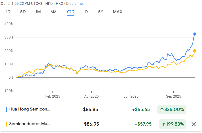 Iar dacă ne uităm la producătorii de chipuri, lucrurile devin aproape obscene: Hua Hong Semiconductor explodează cu 325%, iar Semiconductor Manufacturing International se relaxează la un +200%.