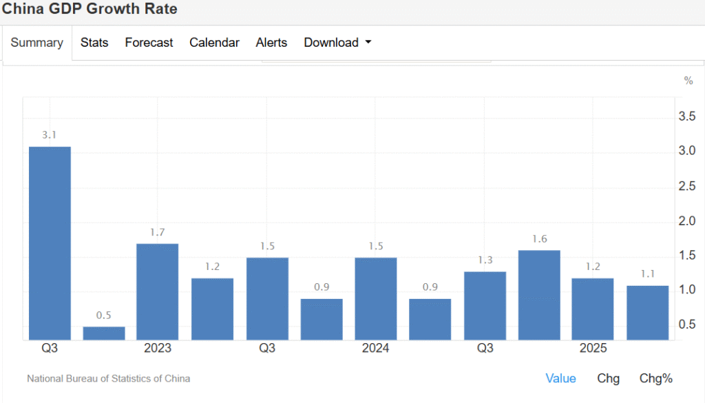 Și acum, piesa de rezistență: PIB-ul. În primul trimestru, China a înregistrat o creștere de 1,2%. În trimestrul doi? 1,1%. Pentru comparație, în aceeași perioadă anul trecut aveau 1,7% și respectiv 1,2%.