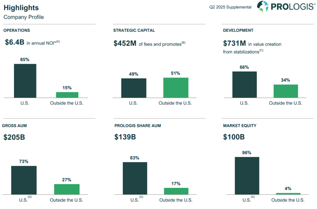 Compania deține un imperiu de proprietăți logistice plasate strategic în zone cu trafic mare și densitate de populație ridicată. Vorbim de „last-mile delivery” – acele facilități la marginea orașelor de unde pleacă furgonetele Amazon, DHL sau FedEx să-ți aducă pachetul. Chiriașii lor variază de la giganți de e-commerce la producători, retaileri și furnizori de logistică. Toți au nevoie de spațiu. Toți plătesc chirie.