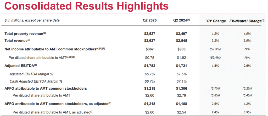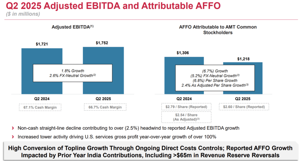 Rezultatele din Q2 arată o poveste în două acte. Actul întâi, cel optimist: veniturile au crescut cu 3.2% ajungând la 2.63 miliarde dolari, depășind estimările. Adjusted EBITDA s-a ridicat la 1.75 miliarde, cu o marjă de 66.7% – cifre care te fac să-ți dorești și tu să ai turnuri în curte.