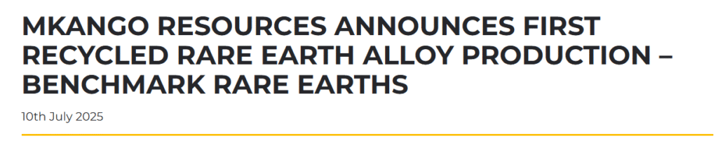 Pe 7 iulie, compania a confirmat prima producție comercială pe sistemul HPMS (procesare a hidrogenului din deșeuri magnetice) de la Tyseley Energy Park din Birmingham. Această instalație – singura la scară comercială din Marea Britanie pentru magneți sinterizați din pământuri rare – va produce 0,5 tone pe lună de produs reciclat cu o amprentă de carbon mai mică și o concentrație de pământuri rare de peste 28%.