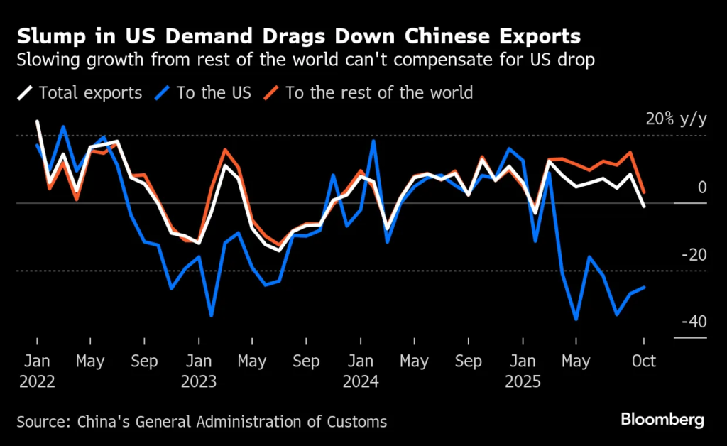 Armistițiul comercial încheiat în octombrie între Xi Jinping și Donald Trump s-a dovedit a fi mai degrabă o pauză de cafea decât o pace durabilă. Livrările de produse chinezești către SUA continuă să scadă într-un ritm alert — în noiembrie, exporturile au căzut cu 28,6%, marcând a opta lună consecutivă de scădere cu două cifre.