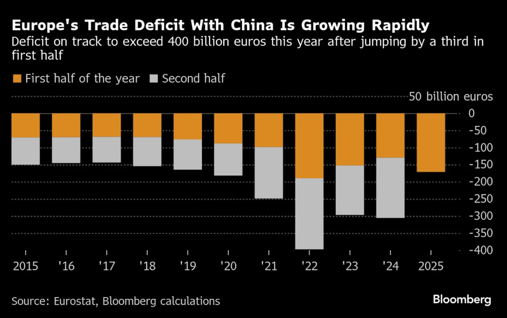Îngrijorarea Parisului nu e infundată — deficitul comercial dintre Franța și China a atins 47 de miliarde de euro anul trecut, iar excedentul comercial al Chinei cu UE în prima jumătate a lui 2025 a crescut până la suma record de 153 de miliarde de dolari. Europa, care până acum a primit cu brațele deschise exporturile redirecționate de la piața americană, se trezește brusc că e următoarea care posibil vor impune tarife protecționiste.