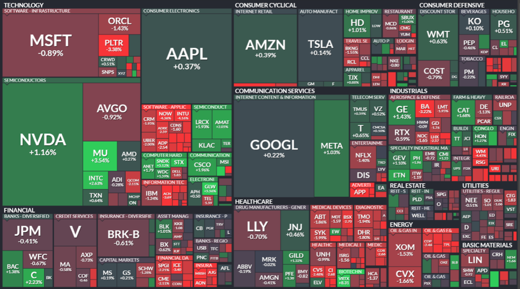 Dow Jones a scăzut simbolic cu 0,07%, S&P 500 cu 0,21%, iar NASDAQ a terminat aproape pe zero, plus 0,01%, cifre care în orice altă zi ar fi însemnat o pauză liniștită după o serie de mișcări mari.