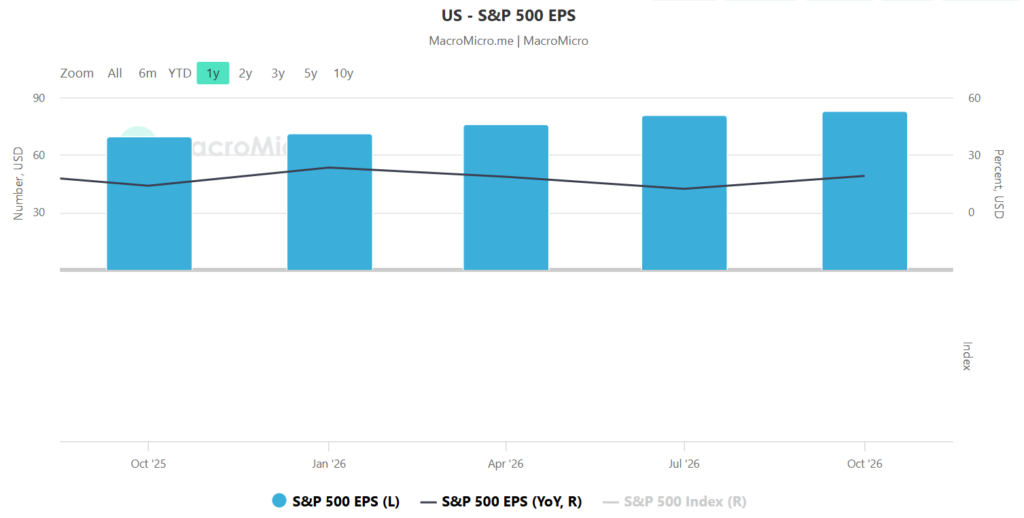 Goldman Sachs intră în sezonul de raportări cu o prognoză care sună aproape plictisitoare: consensul se așteaptă la o creștere a EPS-ului S&P 500 de 7% în Q4 față de anul precedent. Problema e că unii analiști consideră această cifră „din nou prea conservatoare”. În primele trei trimestre ale anului 2025, EPS-ul S&P 500 a crescut cu 10% sau mai mult în fiecare trimestru, depășind estimările analiștilor cu o medie de 6 puncte procentuale. Adică piața a fost sistematic surprinsă în bine, ceea ce înseamnă fie că analiștii sunt prea prudenți, fie că companiile au devenit maestri ai „sand-bagging-ului”, arta de a seta așteptări joase pentru a le zdrobi spectaculos mai târziu.