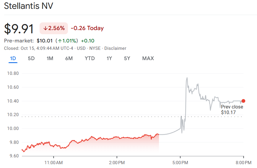 Acțiunile Stellantis NV (NYSE:STLA) au crescut cu 8% în timpul tranzacționării după închiderea sesiunii principale de marți, după ce producătorul auto a anunțat că va investi 13 miliarde de dolari în operațiunile sale din SUA în următorii patru ani. E cea mai mare investiție unică din istoria de 100 de ani a companiei în această țară.