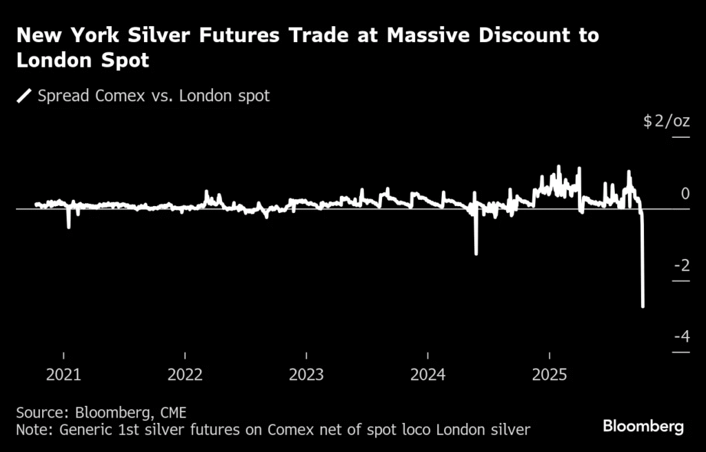 Conform datelor LBMA, stocurile de argint din Londra s-au redus cu aproximativ o treime de la jumătatea anului 2021, lăsând mai puțin metal pentru creditare sau livrare. Cererea globală depășește producția pentru al patrulea an consecutiv, consumând „rezerva” din Londra. În același timp, influxurile către ETF-urile garantate cu argint au forțat custoziile să caute „fizic”, pe măsură ce oferta disponibilă se reducea.