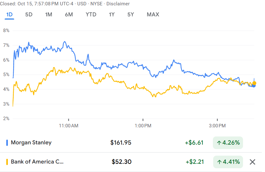 Morgan Stanley și Bank of America tocmai au publicat rezultatele din Q3 și, ca să nu lungim povestea: au dat lovitura. Acțiunile ambelor bănci au sărit cu peste 3% miercuri.