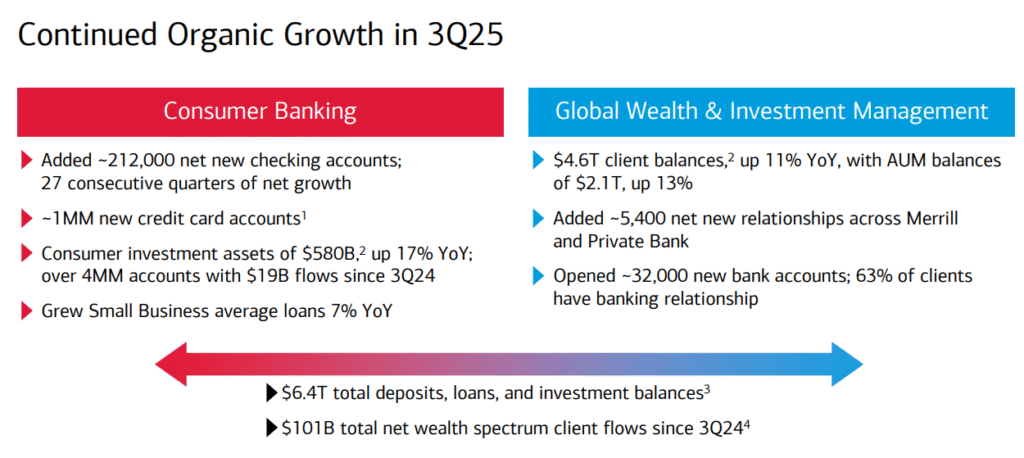 Rezultatele diviziei de Global Banking au fost susținute de o creștere de 43% a comisioanelor pentru servicii bancare de investiții, care au depășit 2 miliarde $. BofA devine astfel ultimul gigant de pe Wall Street care confirmă redresarea activității de tranzacții după stagnarea cauzată de tarifele de la începutul anului. Veniturile segmentului au crescut cu 7%, până la 6,2 miliarde $.