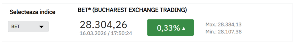 Acasă, BVB a închis în verde pe aproape toți indicii. BET a avansat cu 0,33%, ajungând la 28.304,26 puncte, BET-Plus a urcat cu 0,31%, BET-BK cu 0,32%, iar BET-NG, indicele companiilor energetice și de utilități, a înregistrat cel mai modest avans al zilei, de 0,11%.