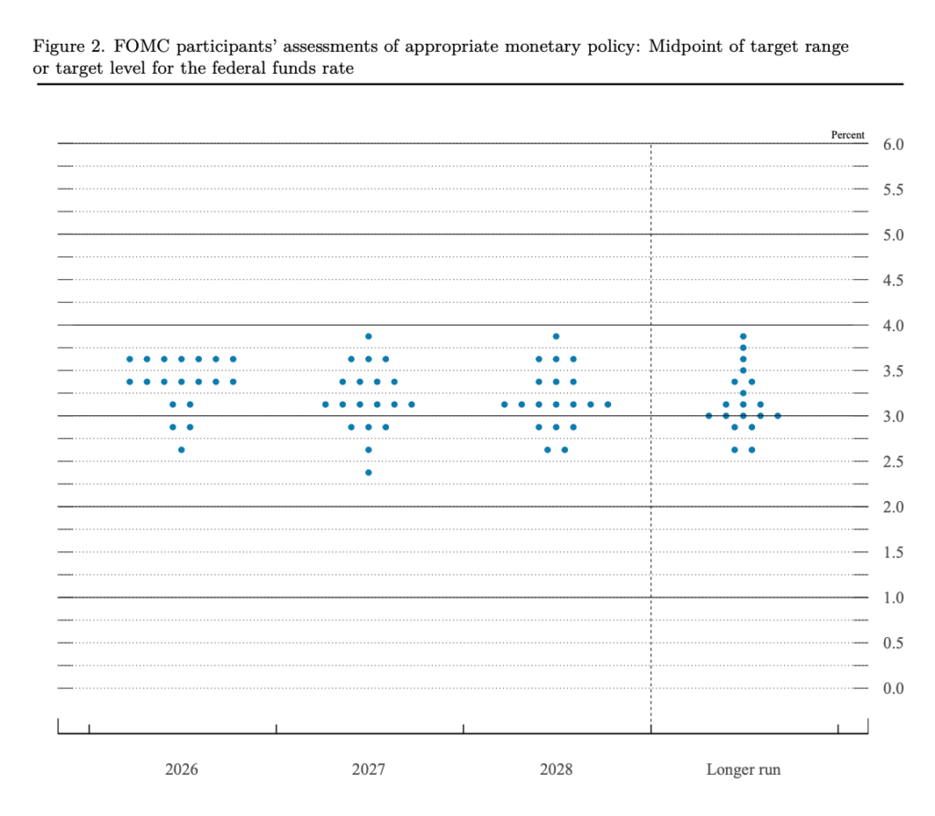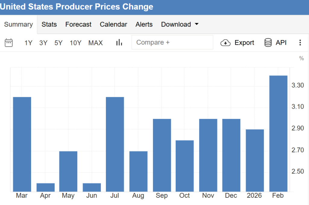 Raportul PPI publicat înainte de deschiderea pieței nu ajutase nici el situația. Prețurile de producție au înregistrat o creștere puternică în februarie, anticipând cu câteva ore mesajul Fed-ului și oferind pieței două motive solide de vânzare înainte de prânz, prețurile cu ridicata crescând de două ori față de estimări. Graficul dot plot indică tehnic una sau două reduceri de dobândă în acest an, dar contractele futures pe fondurile Fed nu mai prețuiesc nicio șansă realistă de mișcare până în decembrie.
