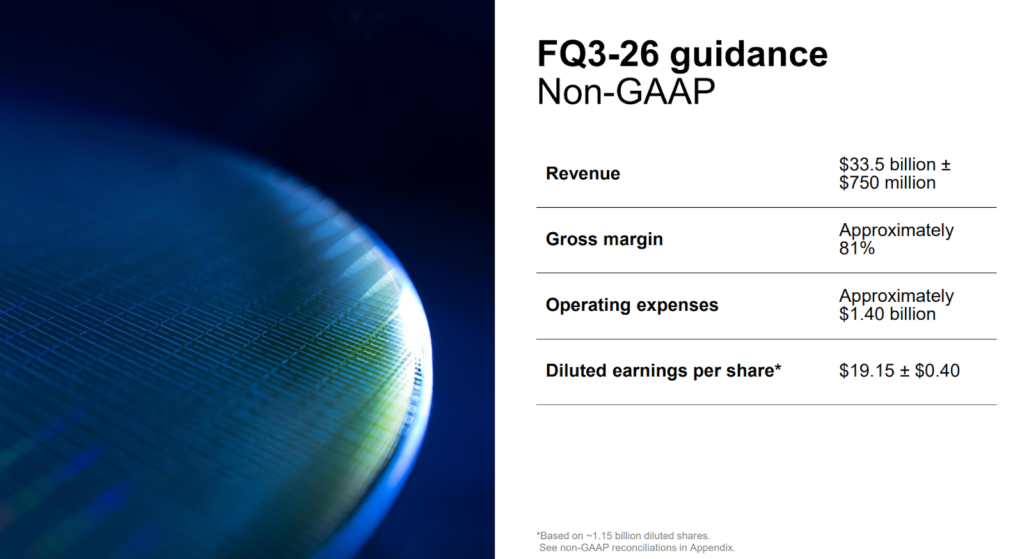 Cifrele operaționale sunt la fel de spectaculoase. Marja brută a sărit la 74,9% față de 57% în trimestrul anterior și față de 38% acum un an. Profitul operațional a atins 16,46 miliarde de dolari, cu o marjă operațională de 69%, un nivel rar întâlnit în hardware, mai specific în industria de semiconductori. Fluxul de numerar operațional a ajuns la 11,9 miliarde de dolari, reprezentând 50% din venituri, iar free cash flow-ul s-a stabilit la 6,9 miliarde de dolari. Ca semn că managementul privește viitorul cu încredere, consiliul de administrație a aprobat o creștere a dividendului trimestrial cu 30%.