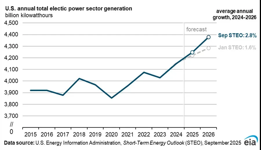 Administrația Informațiilor Energetice vine cu vești care ar trebui să trezească din vis câțiva analiști: consumul de curent va sparge toate recordurile în 2025-2026, de la 4.097 miliarde kWh în 2024 la 4.305 miliarde în 2026.