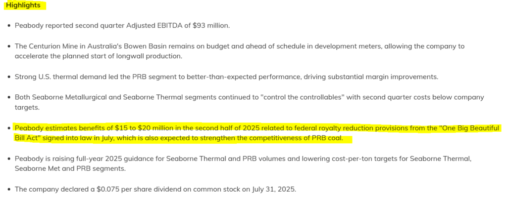 Sectorul cărbunelui termic e susținut de cererea internă de energie și un mediu de reglementare mai favorabil. Portofoliul diversificat le permite să profite de oportunitățile pe termen scurt, mai ales că utilitățile americane se bazează pe surse stabile de energie de bază.