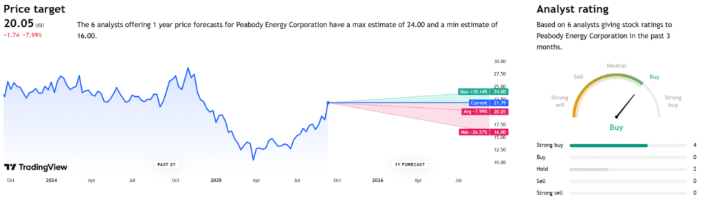 Analiștii au țintă de preț medie la 20 USD, dar aceasta a fost deja depășită – prețul actual e 21,79 USD, cu ținta maximă la 24 USD (+10%). Nu e explozie, dar nici dezastru.