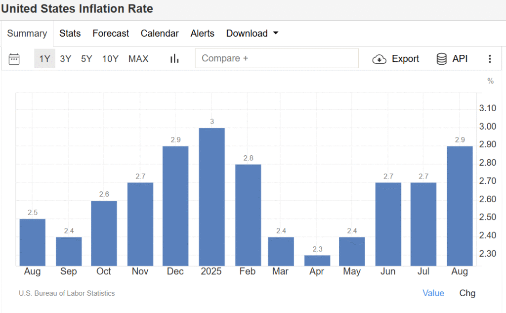 În august, inflația globală a crescut cu 0,4% (în linie cu așteptările), ducând rata anuală la 2,9% – sub prognoza de 3%, ceea ce a fost interpretat ca un semn pozitiv. Inflația de bază, care exclude alimentele și energia (adică exact lucrurile pe care le cumpără oamenii reali), a crescut cu 0,3%, menținând rata anuală la 3,1%.
