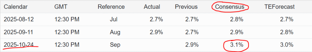 Vineri, Biroul de Statistică al Muncii – care a funcționat cu personal redus din cauza shutdown-ului, dar măcar a funcționat – va publica cifrele indicelui prețurilor de consum pentru septembrie. Și aici lucrurile devin interesante.