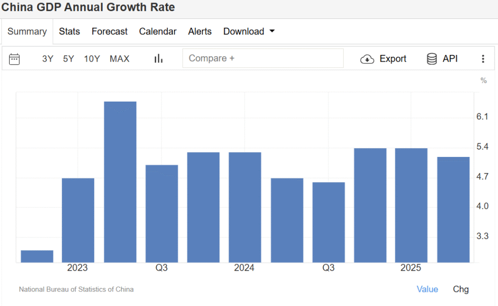 Pentru Q3, însă, consensul estimează o scădere la 4,7% – cel mai slab ritm din Q3 2024. E o decelerare vizibilă, care va întări argumentele pentru noi măsuri de stimulare din partea guvernului chinez. Mai ales că războiul comercial cu SUA se intensifică, iar economia internă dă semne de oboseală.