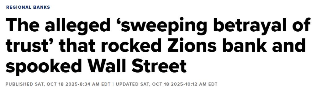 Totul arată impecabil în spreadsheet. Problema e că, în spatele acestor cifre rotunde și reconfortante, piața a digerat un cocktail toxic: război comercial SUA-China la temperatură crescândă, guvern american închis de parcă ar fi vilă de vacanță în extrasezon, și – piesa de rezistență – băncile regionale care au început să dea semne că poate, doar poate, nu totul e sub control la capitolul „am învățat ceva din 2023”.