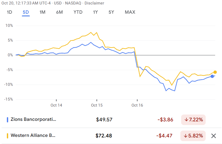 Joi dimineața, două bănci regionale – Zions Bancorporation și Western Alliance Bancorporation – au decis să fie transparente. Adică, au dezvăluit că au credite neperformante. Multe. Suficient de multe ca să provoace „valuri în industrie”, cum spun eufemistic rapoartele oficiale.