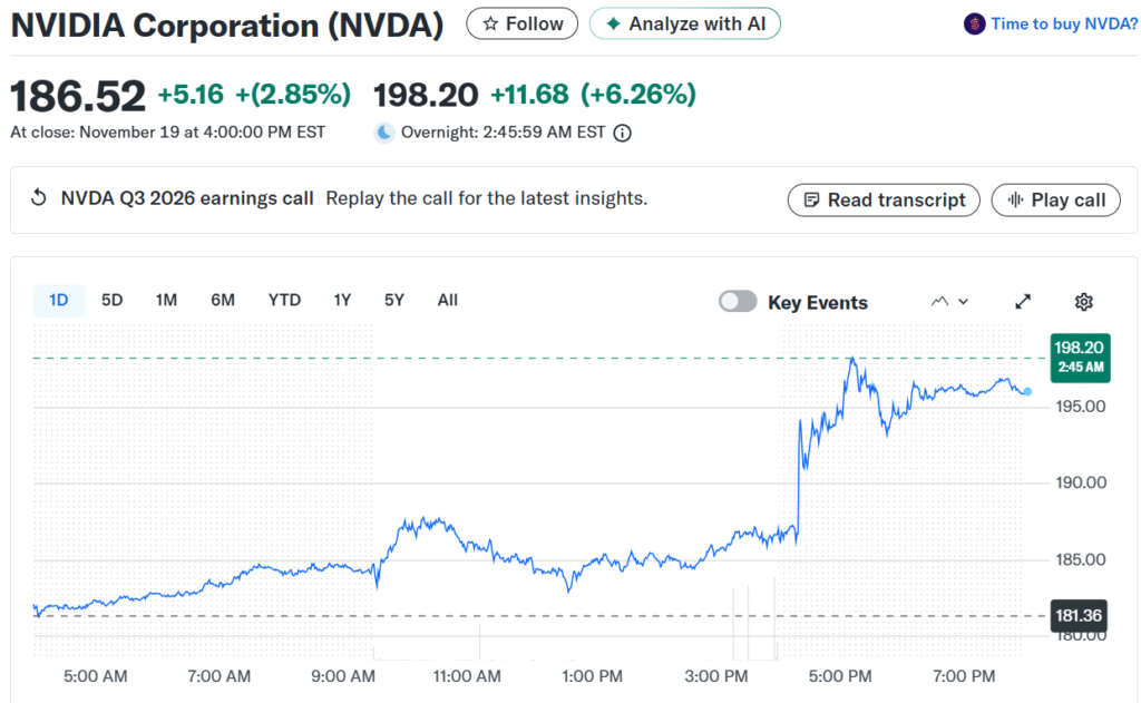 NVDA a crescut cu 6% după închiderea pieței, adăugând peste 300 de miliarde de dolari la capitalizarea de piață. Doar așa, peste noapte.