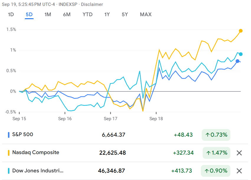 Săptămâna trecută a adus trei săptămâni consecutive de creșteri pe Wall Street, cu recorduri noi ca la carte. Motivul? Fed-ul a revenit cu reducerile de dobânzi, iar investitorii au sărit pe această oportunitate imediat.