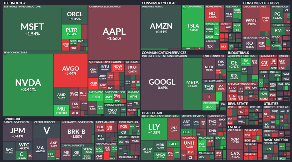 Să aruncăm o privire rapidă asupra cifrelor concrete: Dow Jones a scăzut 0,7%, S&P 500 a crescut timid cu 0,1%, iar Nasdaq a câștigat 0,5%. Russell 2000 a pierdut 1%, iar indicele de volatilitate CBOE s-a calmat cu 5,3%.