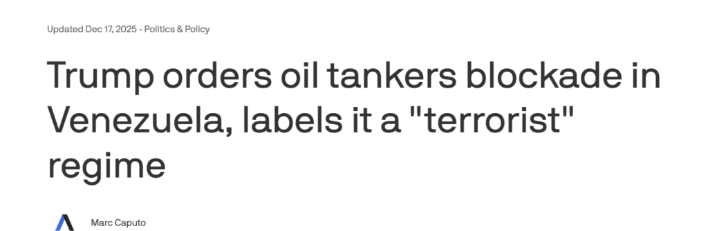 Petrolul a fost vedeta săptămânii din alt motiv. Președintele Trump a decis că e momentul perfect pentru o mișcare geopolitică spectaculoasă: a blocat toate petrolierele sancționate care intră și ies din Venezuela, desemnând în același timp regimul Maduro drept organizație teroristă străină. Piața petrolului a reacționat cum era de așteptat, cu nervozitate și volatilitate.