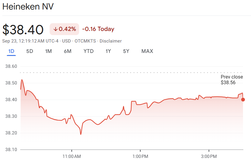 Acțiunile Heineken au scăzut ieri cu 0,42% pe bursa din SUA și cu 0,73% în Țările de Jos.