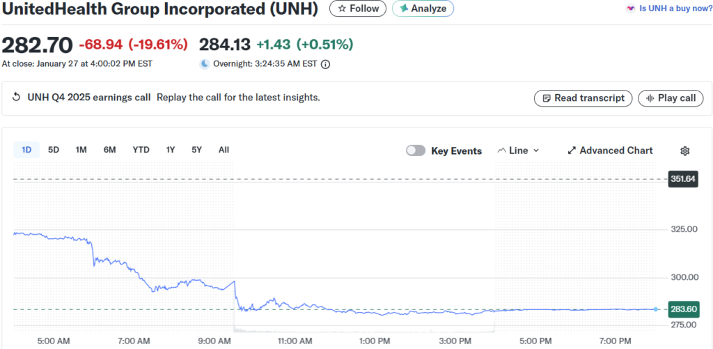 Pe partea cealaltă a baricadei corporatiste, UnitedHealth a trecut printr-un adevărat masacru. Acțiunile au scăzut cu 19% după ce compania a ratat estimările de profit și a aruncat o prognoză lugubră pentru 2026. Casa Albă, între timp, a decis să reducă creșterea cheltuielilor Medicare pentru anul viitor, lovind întregul sector medical american ca un bulldozer, Humana, Molina și CVS au căzut toate cu peste 10%. Sistemul de sănătate american, deja fragil, își arată fisurile.
