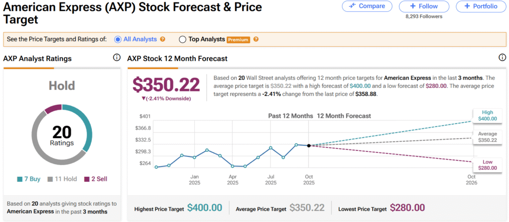 Verdictul? American Express e o investiție de calitate superioară, cu un MOAT puternic bazat pe brand și integrare verticală. La prețul actual pare evaluată corect (Fair Value) pe baza țintelor analiștilor. Dacă ești investitor pe termen lung care apreciază companiile cu fluxuri de venituri previzibile și o clientelă care refuză să plece, AXP își va justifica probabil prețul actual – bazându-se pe capacitatea sa unică de a monetiza obsesia lumii pentru exclusivism.