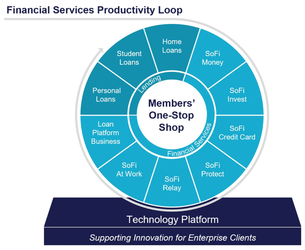 3. Technology Platform (Platforma Tehnologică) – Și aici vine șmecheria: prin Galileo și Technisys, SoFi oferă soluții de back-end pentru alte instituții financiare și FinTech-uri din întreaga lume. Adică nu doar că își servește propriii clienți, dar vinde și infrastructura tehnologică altor jucători. E ca și cum Netflix ar produce seriale, dar în paralel ar vinde și sistemul de streaming către HBO.