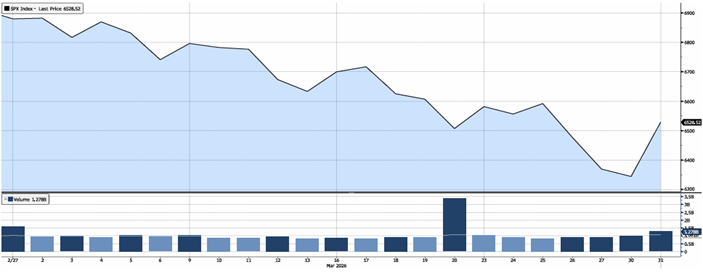 Pe piețele internaționale, volatilitatea a fost în creștere, iar direcția generală a pieței a fost pusă sub presiune. În Statele Unite, indicele S&P 500 a scăzut cu 5,09%, pe fondul preocupărilor legate de evoluția evenimentelor din Orientul Mijlociu, nivelul costurilor, multiplii de piață și gradul ridicat de îndatorare asociat investițiilor în inteligență artificială, precum și de importanța resurselor energetice, în special aprovizionarea economiilor cu petrol.